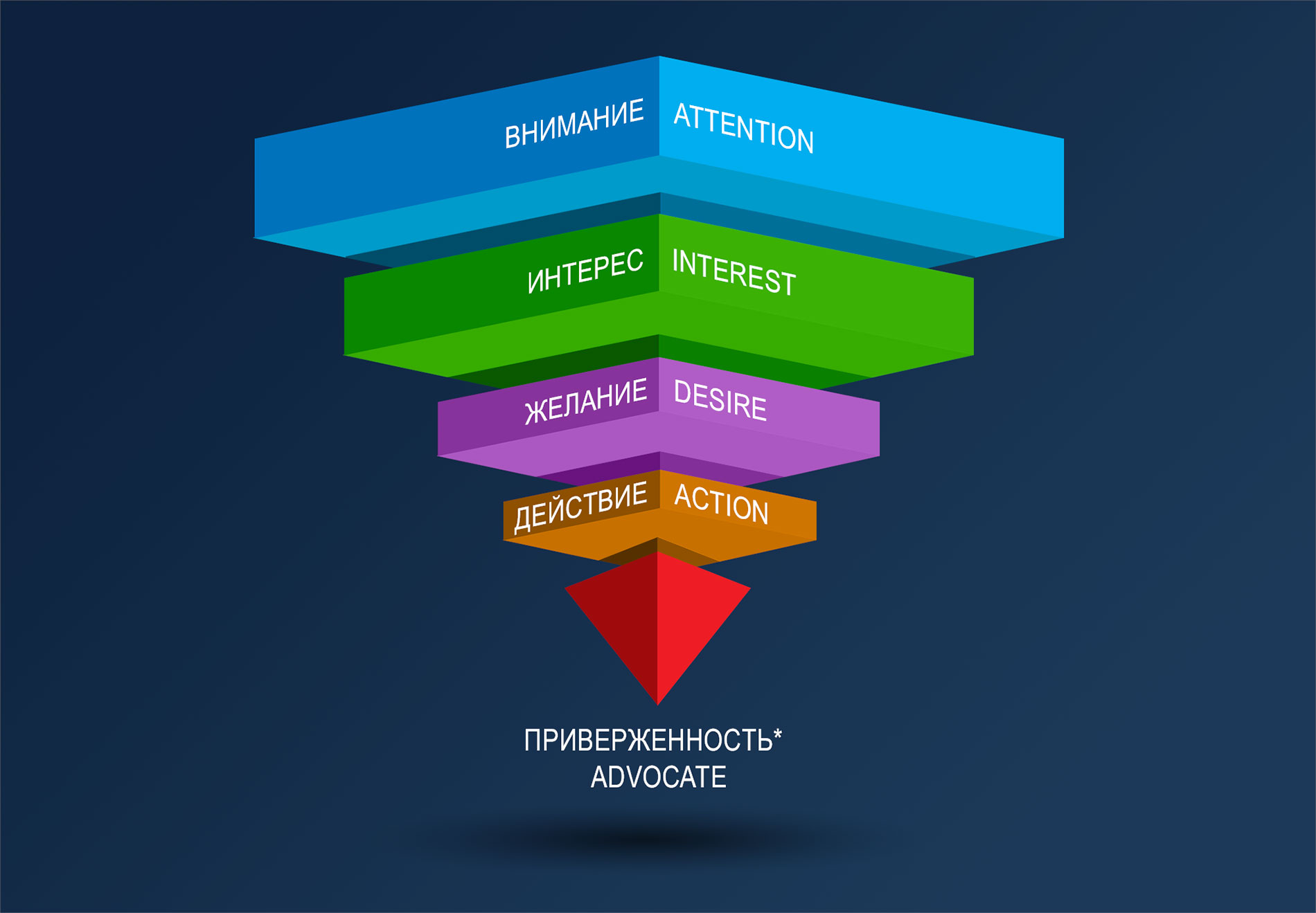 * Еще есть концепция котлера «ААААА», которая незначительно отличается от AIDA, где появляется пятый пункт «приверженность»,  отвечающий за лояльность бренду и рекомендации к новой покупке.